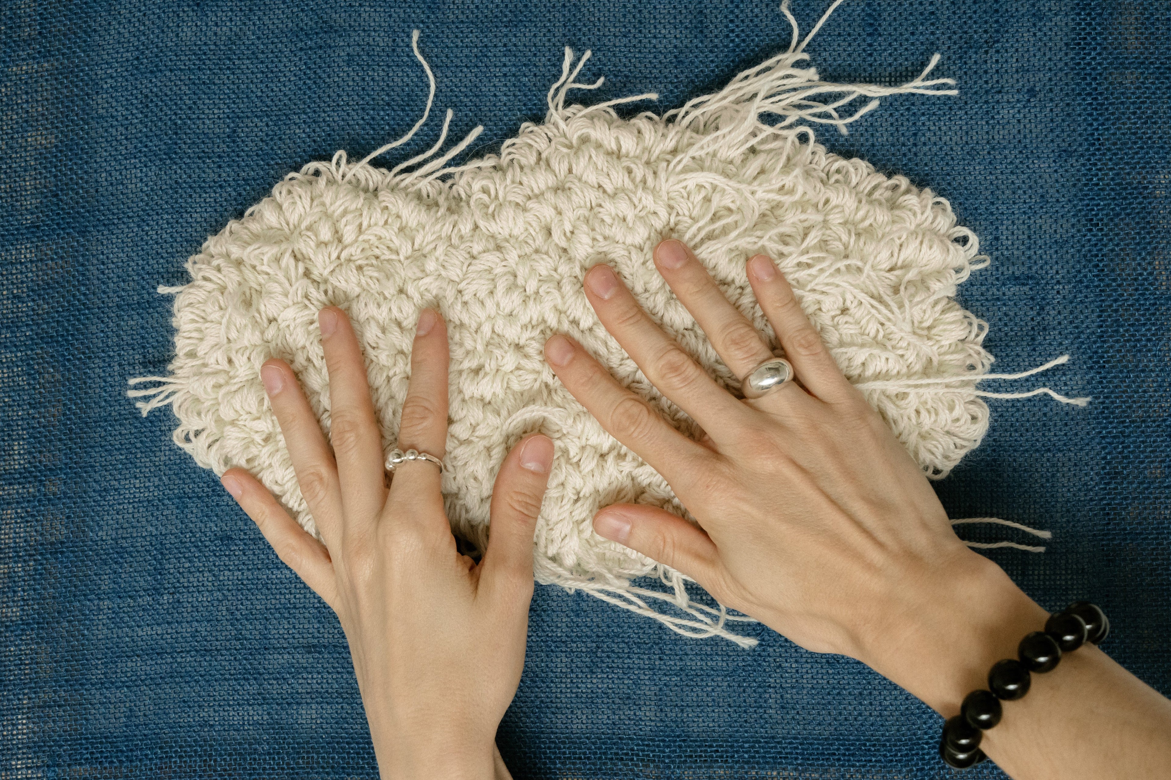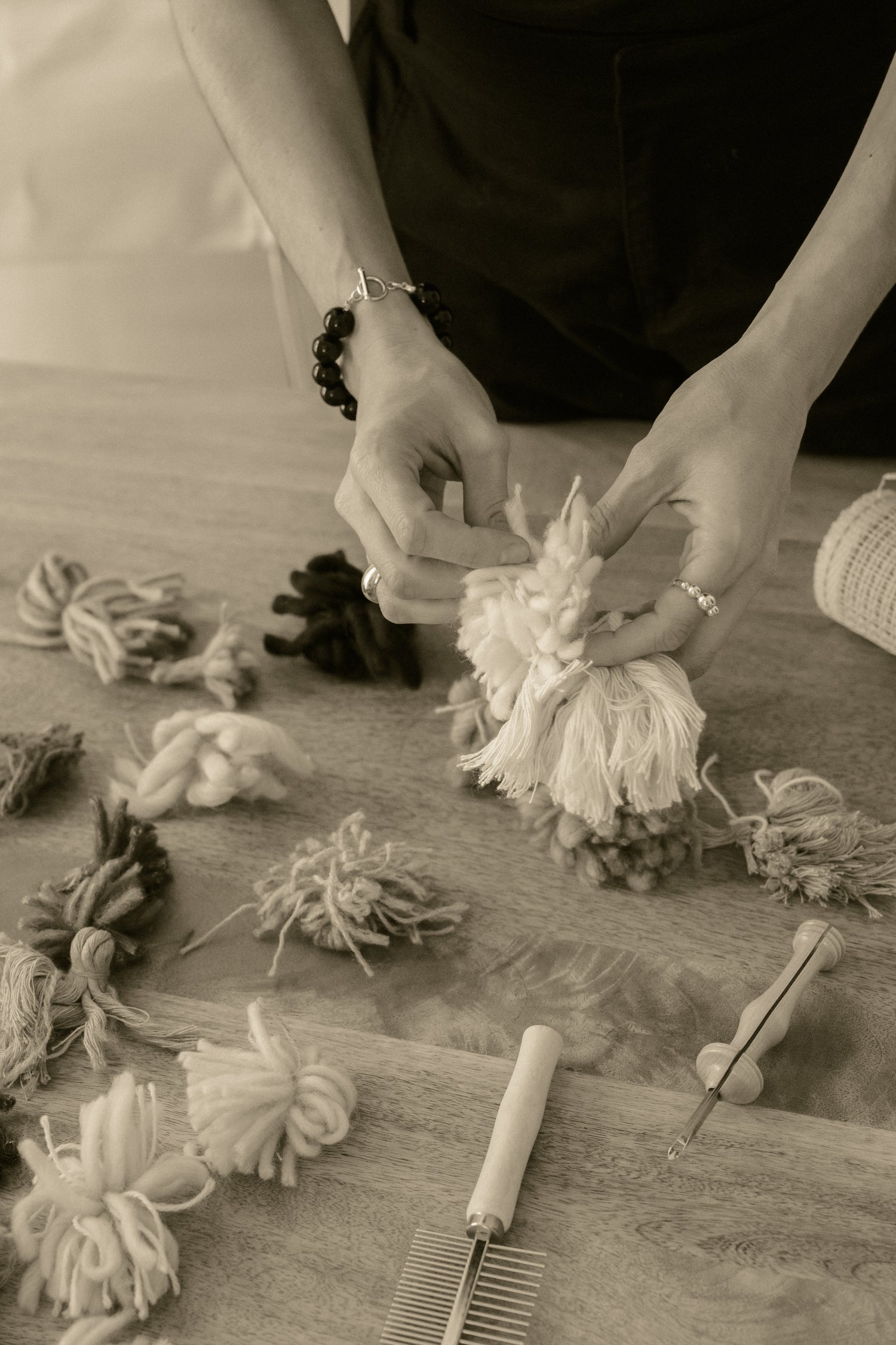 My career began in different creative fields: I worked as an actress, photographer, designer, art director, advertising, as a craft curator and content creator. All this journey gave me the tools and lessons, but I felt the need to channel them into a more artistic and personal project. That 's where my connection with textiles began: a medium that allowed me to experiment, create by hand, and above all, reconnect with my Fine Arts training, where I specialized in drawing and printmaking. The line has always been the central axis and driving force of my work, and by working with fibers I found a way to give it volume, texture and a more tactile language.