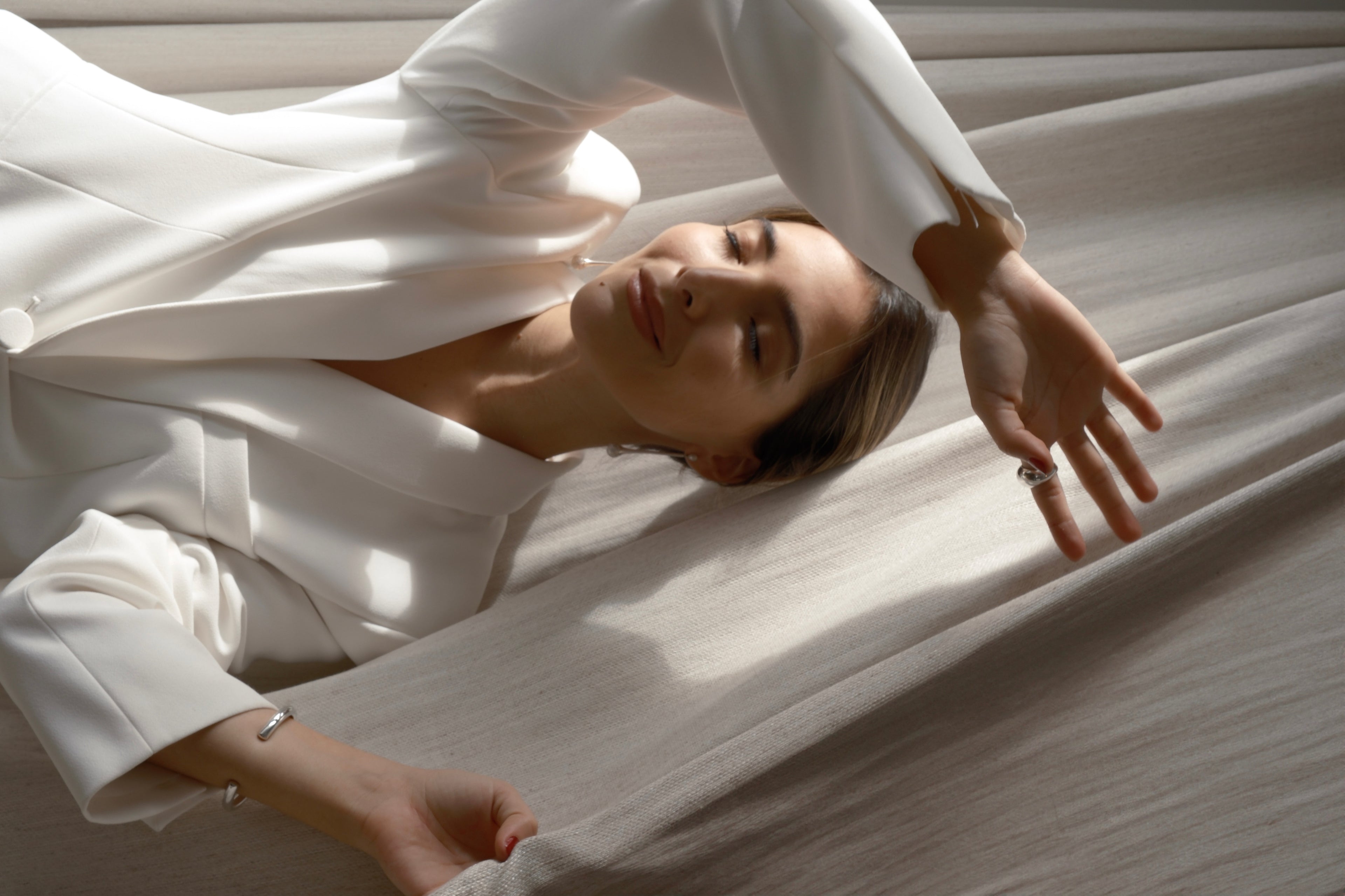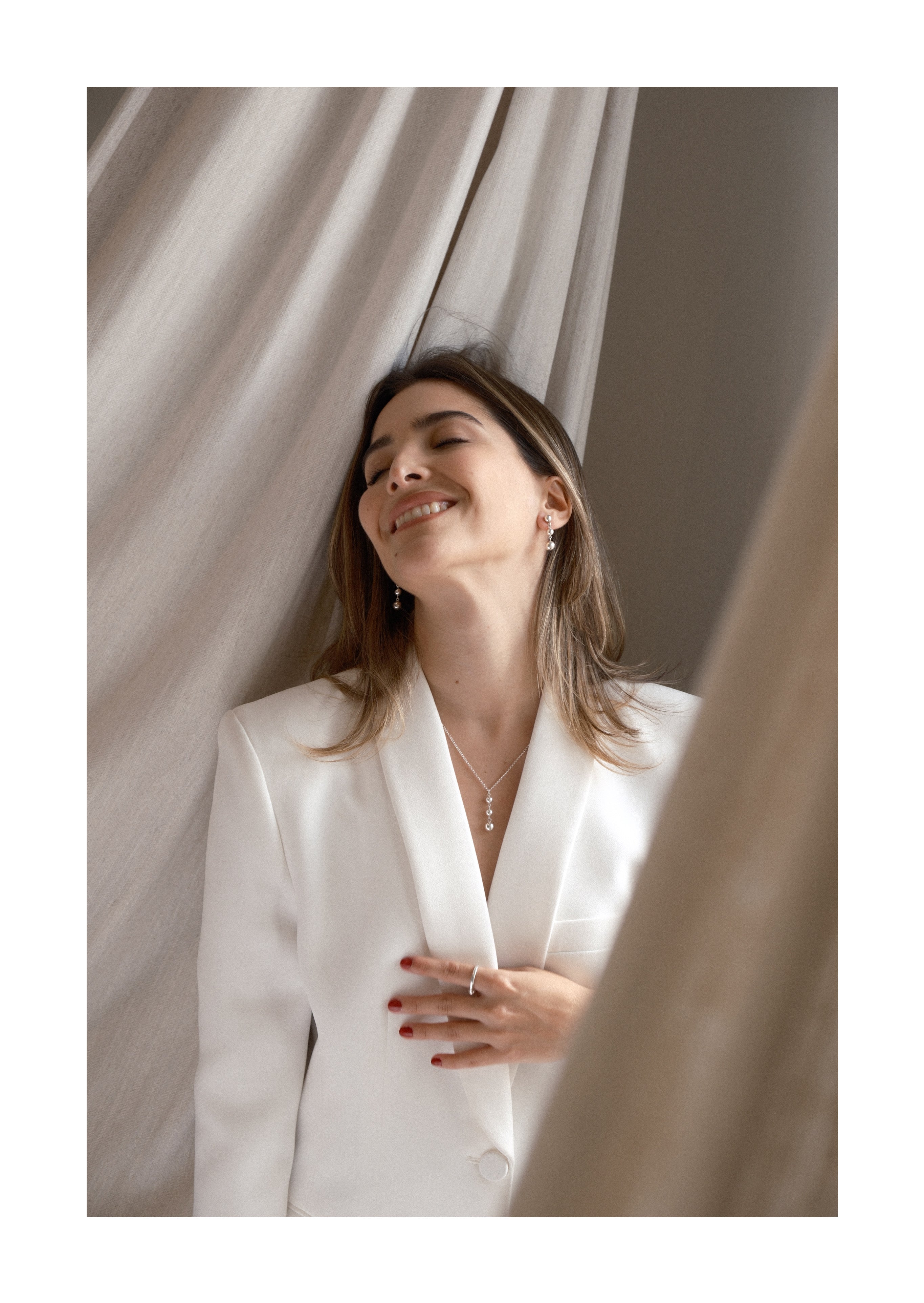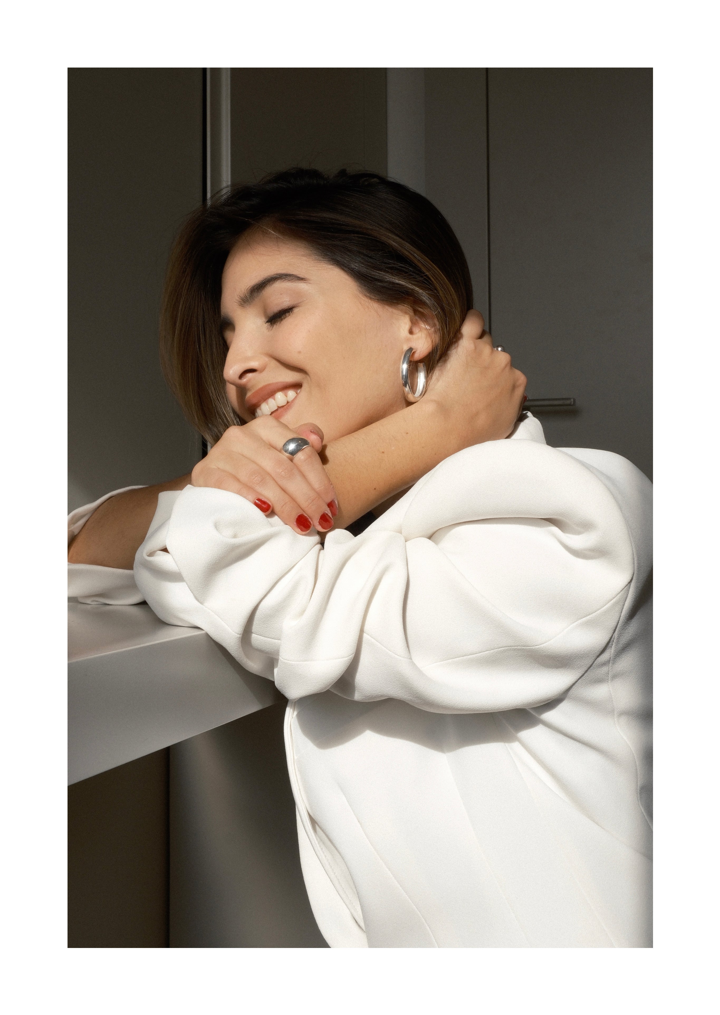 María con los pendientes Aigua plata y el anillo Ifach plata.