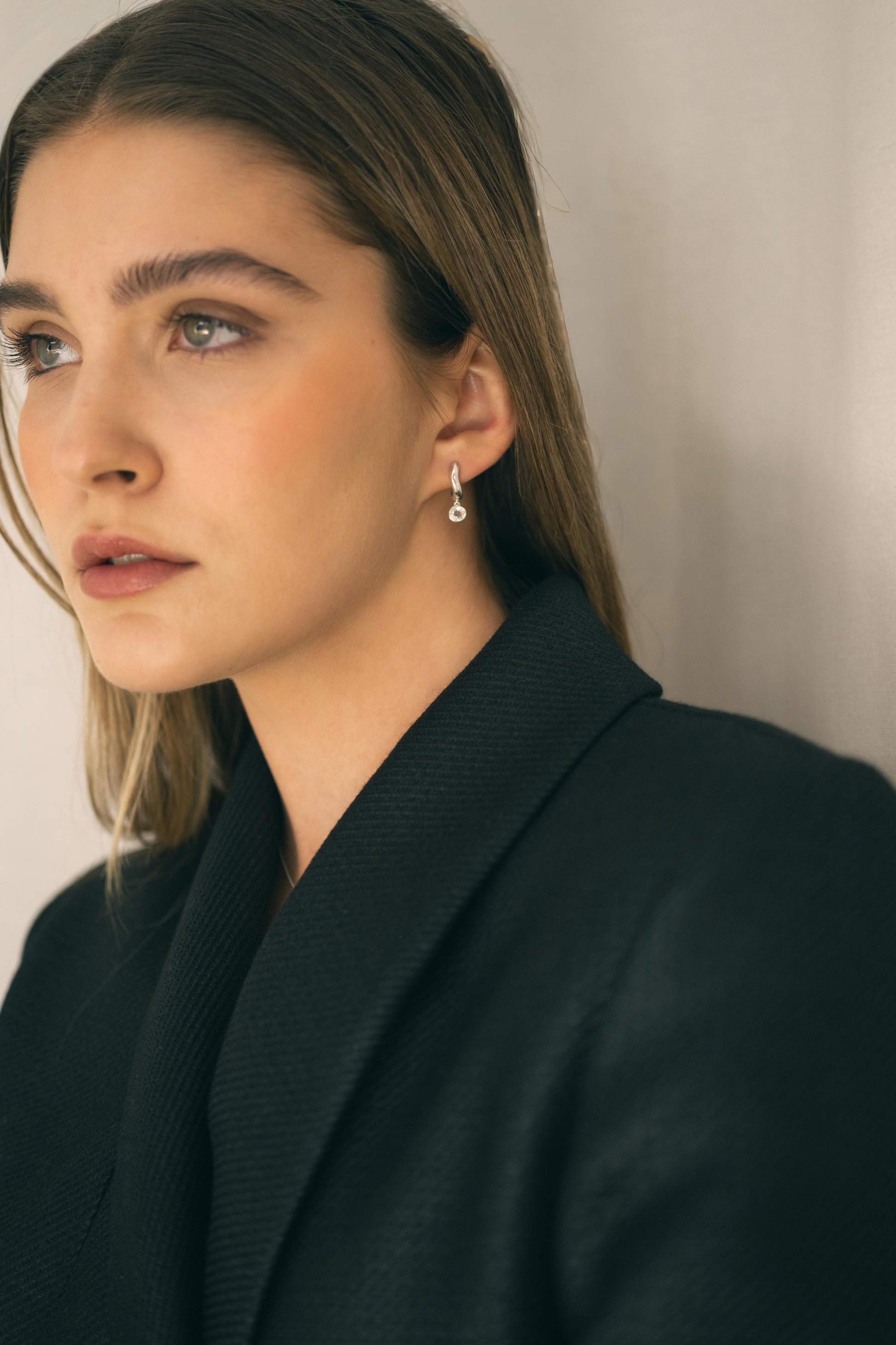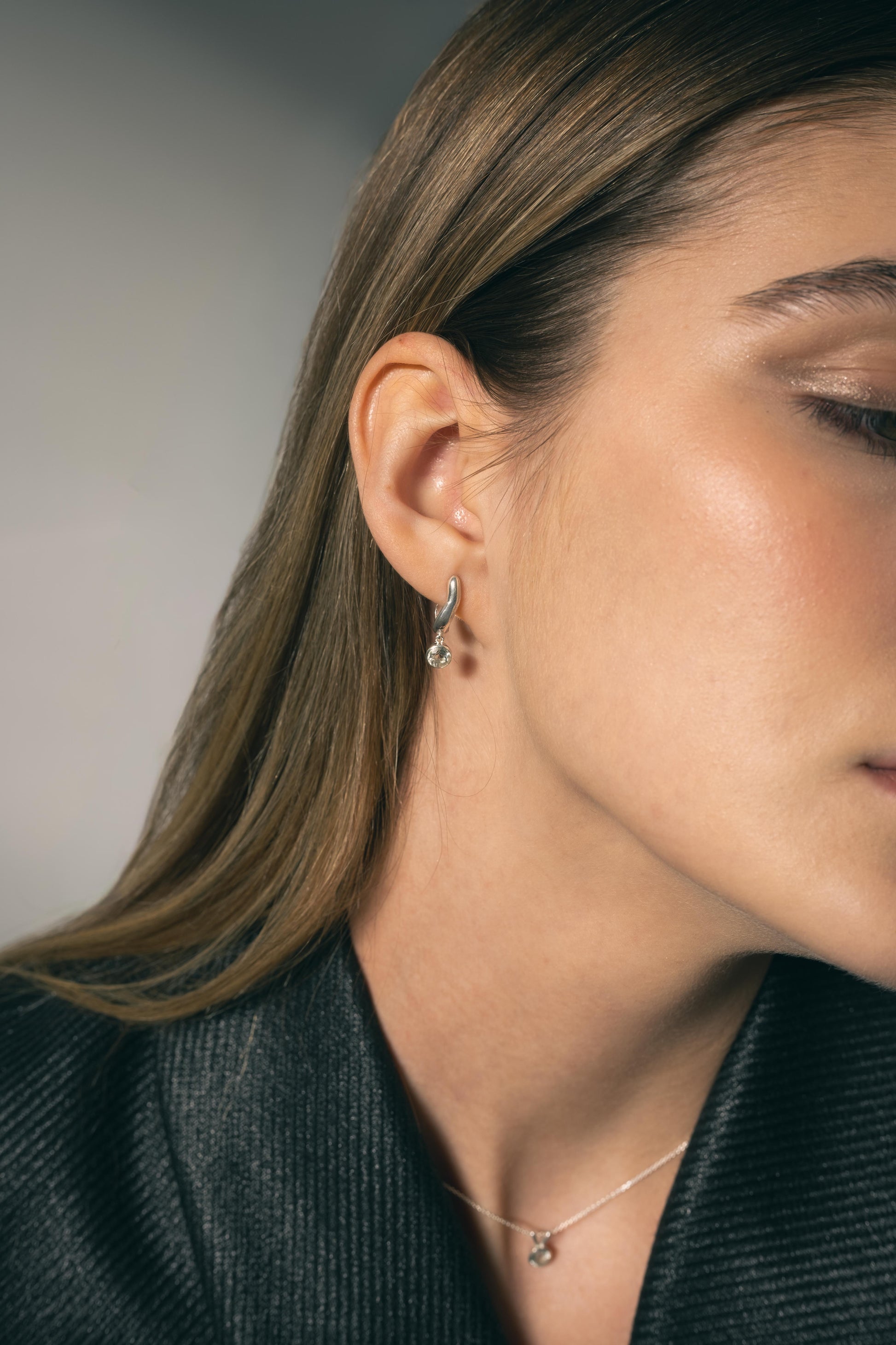 Hechos a mano en España y elaborados en plata de ley 925, los pendientes Essence Hoop se definen por dos aro de forma ondulada, orgánicos y fluidos, acompañados por un par de prasiolitas naturales que dialogan con el movimiento.