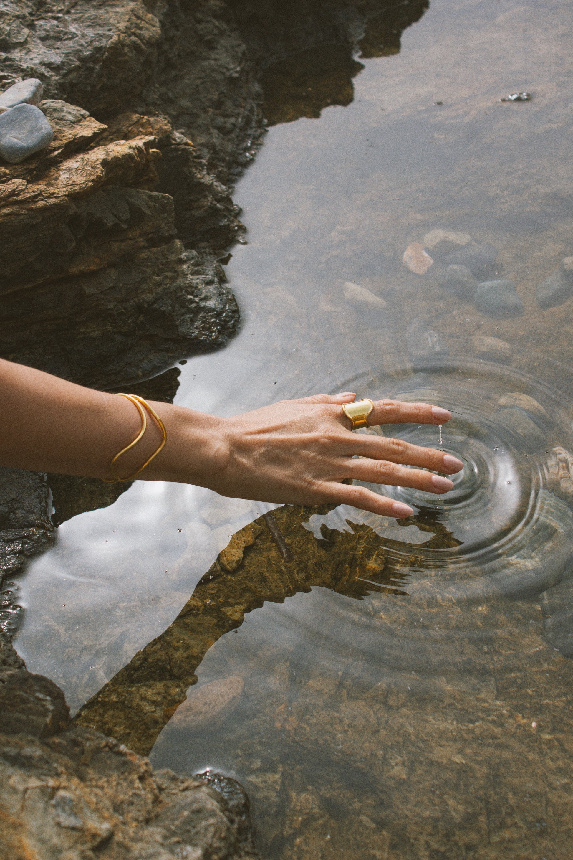 Handmade in Spain with 925 sterling silver and 24k gold plating, the Milos ring is inspired by the volcanic and sculptural landscapes of the Greek island that gives it its name.
