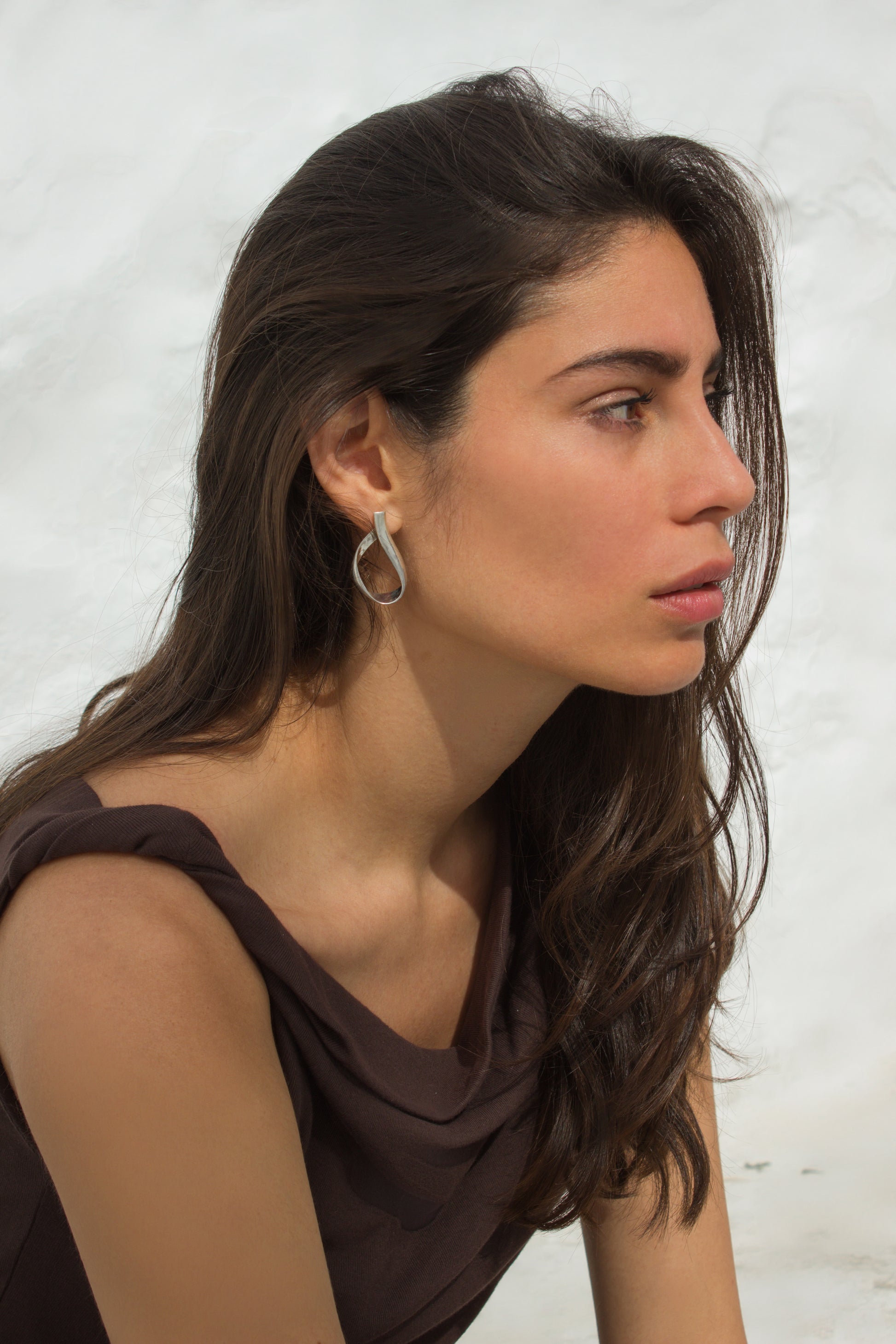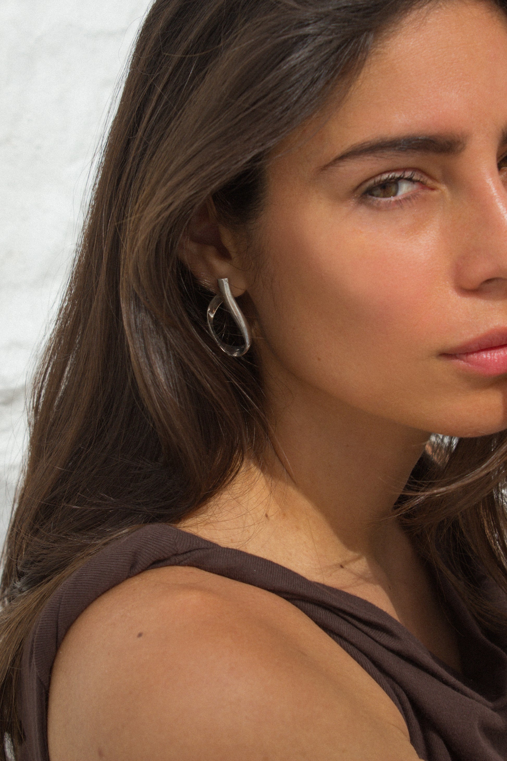 Handmade in Spain with 925 sterling silver, the Siros earrings form a curved hoop that gently intertwines, creating a harmonious and fluid design, designed to elevate your essence on any occasion.